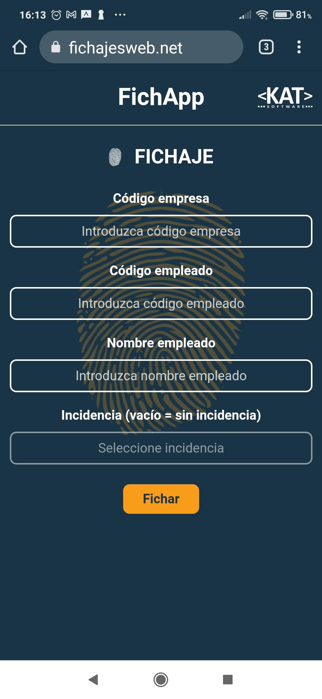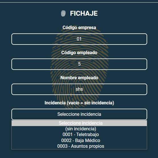 FichajesWEB es una aplicación para dispositivos con navegador Web (Ordenador, Tableta, Teléfono móvil…), que permite realizar fichajes de trabajo al personal de una empresa que realiza sus tareas fuera de la misma. Es adecuada para personal desplazado debido a teletrabajo, instaladores, servicio técnico, comerciales, representantes, … Fichajes WEB permite que dicho personal registre los fichajes de su jornada laboral.