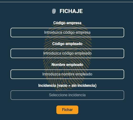 FichajesWEB es una aplicación para dispositivos con navegador Web (Ordenador, Tableta, Teléfono móvil…), que permite realizar fichajes de trabajo al personal de una empresa que realiza sus tareas fuera de la misma. Es adecuada para personal desplazado debido a teletrabajo, instaladores, servicio técnico, comerciales, representantes, … Fichajes WEB permite que dicho personal registre los fichajes de su jornada laboral.